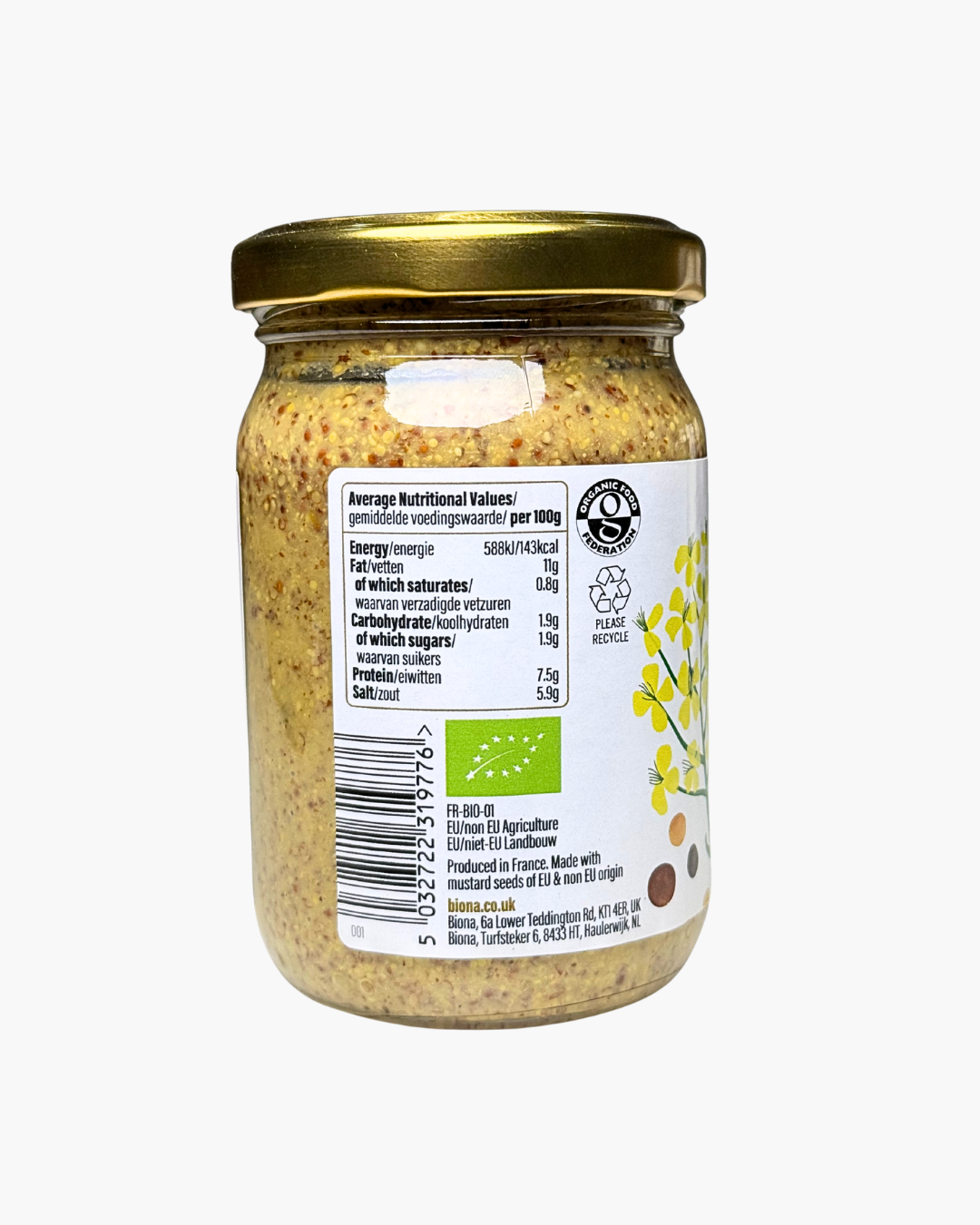 Conveniently packaged in a 200g jar, it stays fresh and ready for everyday use. Perfect for home cooks and culinary enthusiasts alike, Biona Organic French Wholegrain Mustard adds depth, texture, and wholesome taste to your dishes, combining quality, authenticity, and natural goodness.