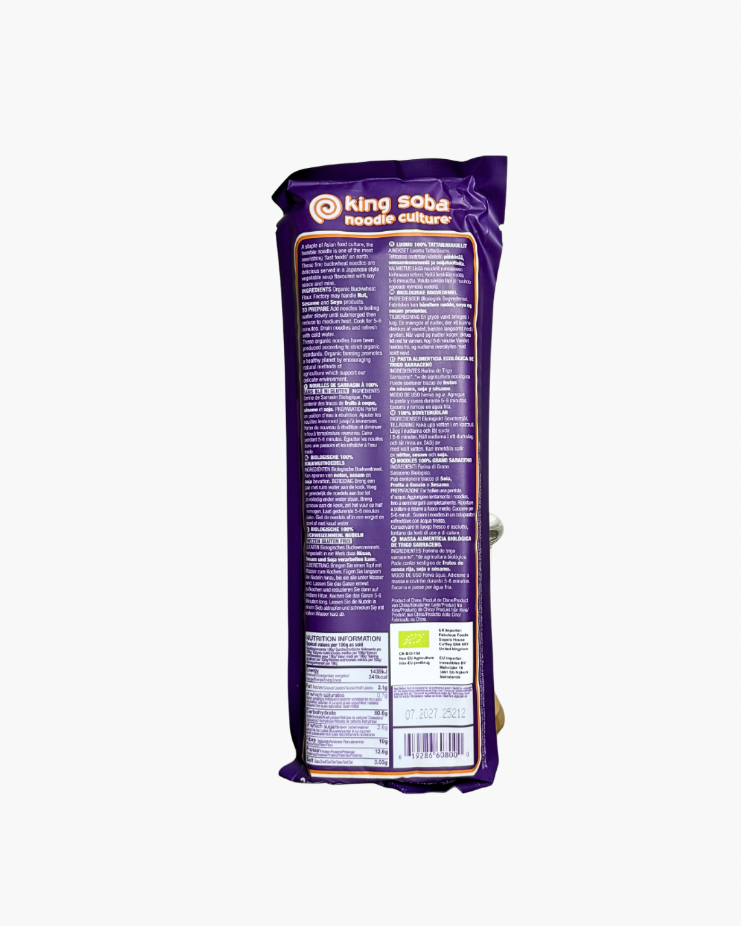 King Soba Organic 100% Buckwheat Noodles are crafted from high-quality organic buckwheat flour, offering a naturally gluten-free alternative to traditional wheat noodles. With a firm, slightly nutty texture and robust flavour, they hold up beautifully in stir-fries, soups, salads, and other Asian-inspired dishes. Packed with plant-based protein, fibre, and essential nutrients, these noodles provide a wholesome, satisfying base for a variety of meals. Free from artificial additives and preservatives, they reflect King Soba’s commitment to organic, sustainable, and nutritious foods. Convenient and quick to prepare, these noodles are ideal for anyone seeking a healthy, versatile, and delicious gluten-free option for everyday cooking.