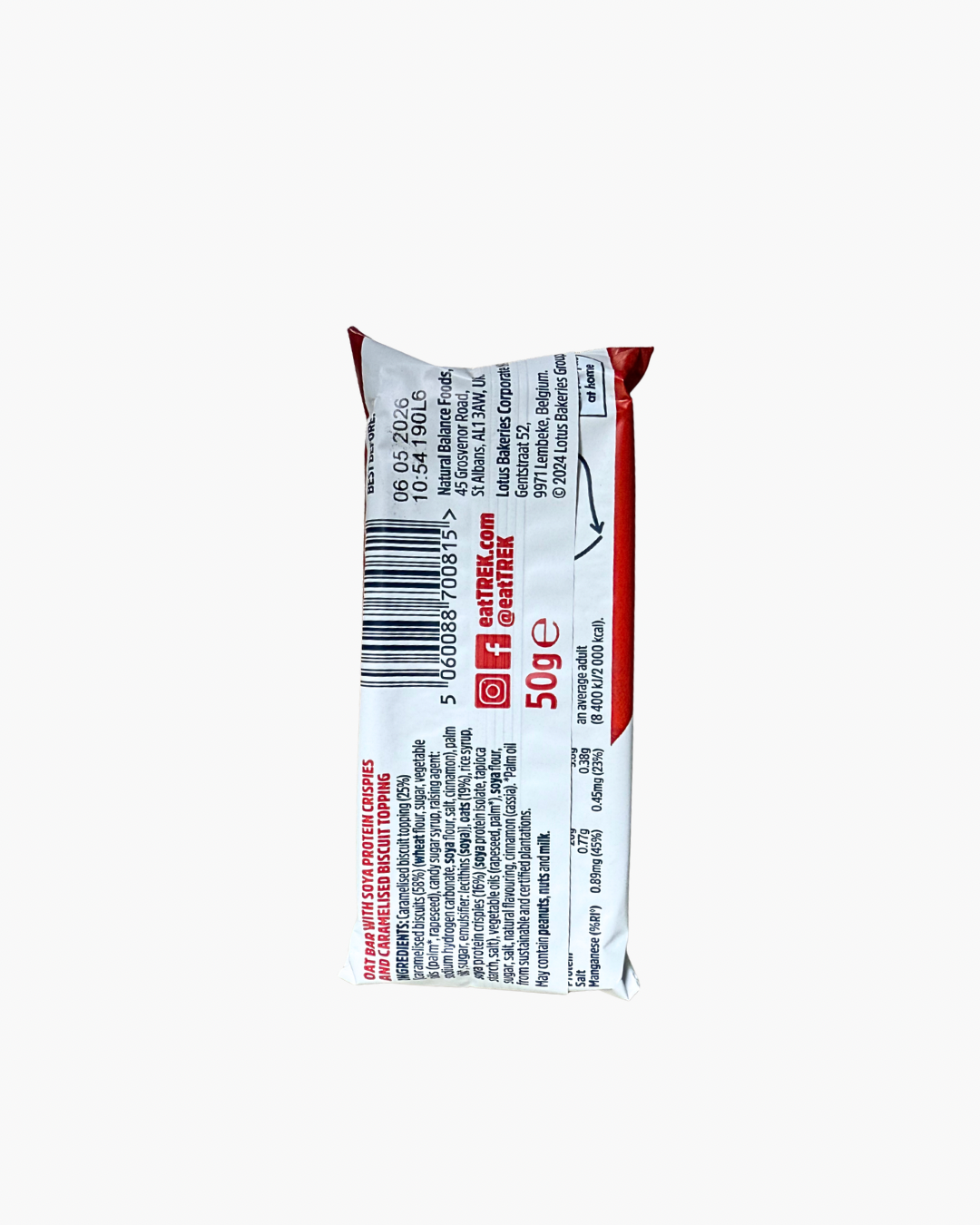 Enjoy the perfect balance of taste and nutrition with the Trek Biscoff Protein Flapjack Bar.