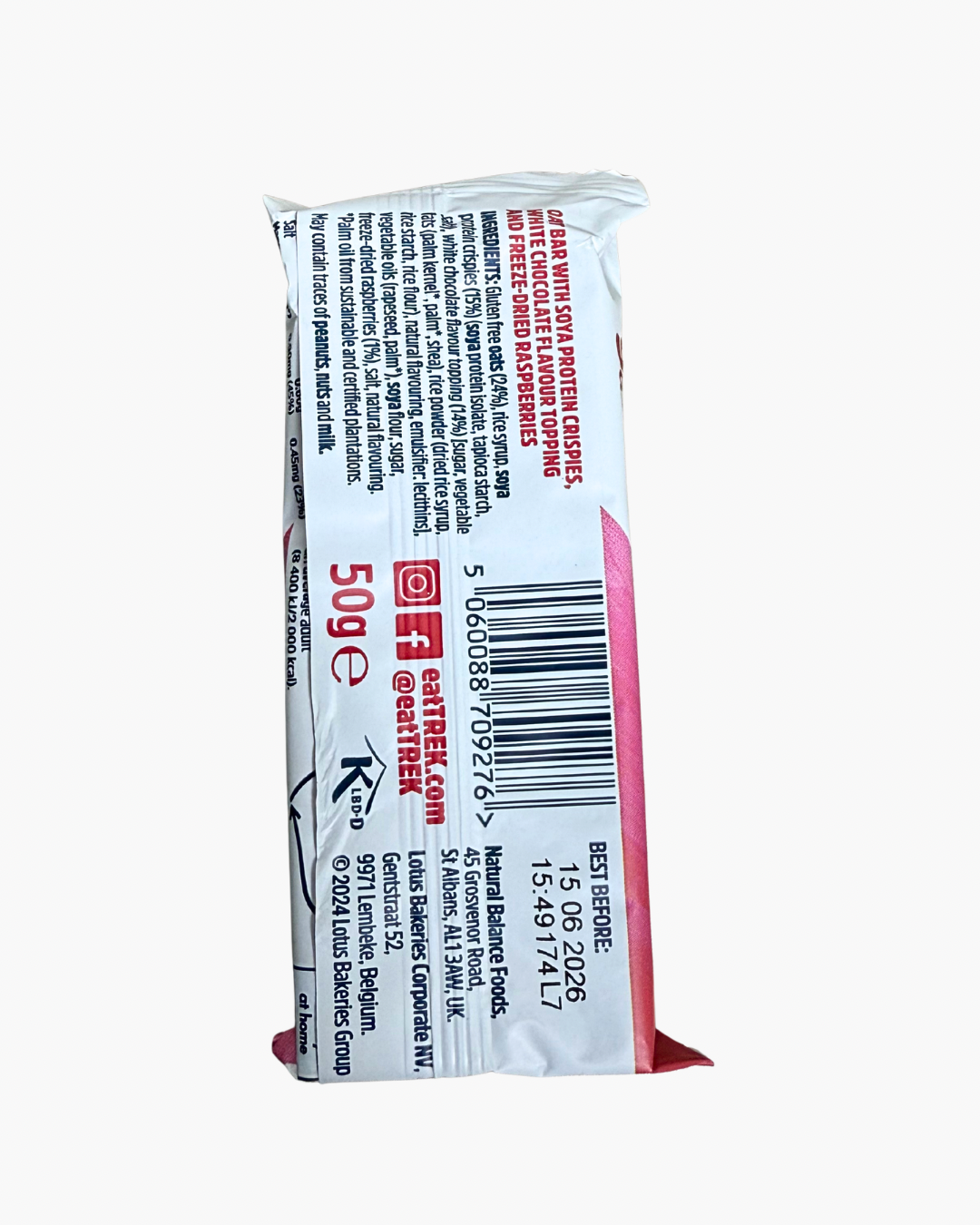 Savor the perfect mix of indulgence and nutrition with the Trek White Choc & Raspberry Protein Flapjack Bar. Crafted from wholesome oats, plant-based protein, smooth white chocolate, and vibrant raspberry pieces, this flapjack delivers satisfying energy and great taste.