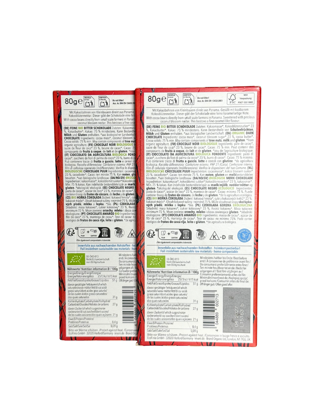 Certified organic and vegan, Vivani chocolate is made without soy lecithin and adheres to strict quality standards, celebrating ethical sourcing and natural ingredients.